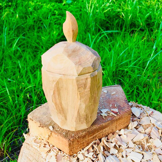 生木のうちに内部をえぐって空洞にし、縮みを利用して、ふたが締まるようにつくった入れ物です。
